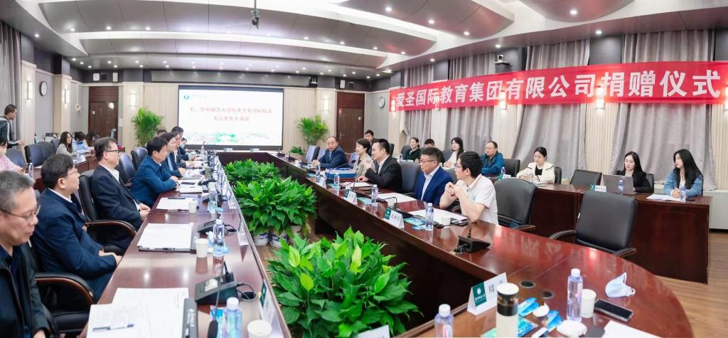 华大在线讯(通讯员易吉林 罗少琦)10月13日,爱圣国际教育集团有限公司捐赠仪式暨校友座谈会在校举行。爱圣国际教育集团有限公司董事长关云平、爱圣国际教育集团有限公司总裁陈雅、副总裁吴跃,校党委书记赵凌云、校长郝芳华、副校长彭南生以及相关单位负责人和师生代表参加捐赠仪式。仪式由副校长任友洲主持。