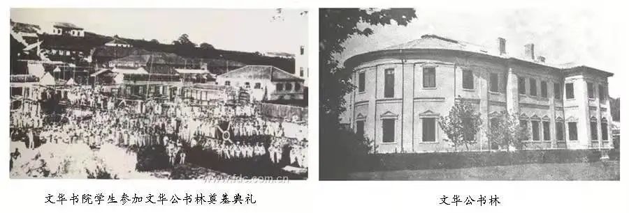 1909年5月,文华书院在美国哥伦比亚特区注册,改名文华大学校,并将武昌博文书院和汉口博学书院的大学预科班并入。文华大学外籍教师韦棣华为学校筹建的图书馆完工,中国近代第一座公共图书馆诞生,定名“文华公书林”。